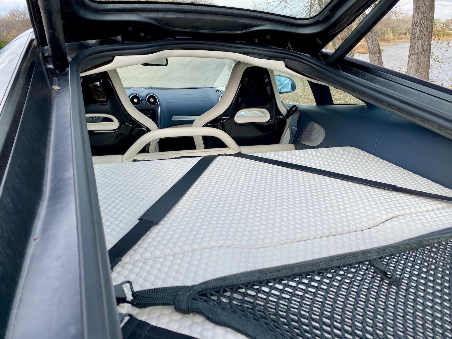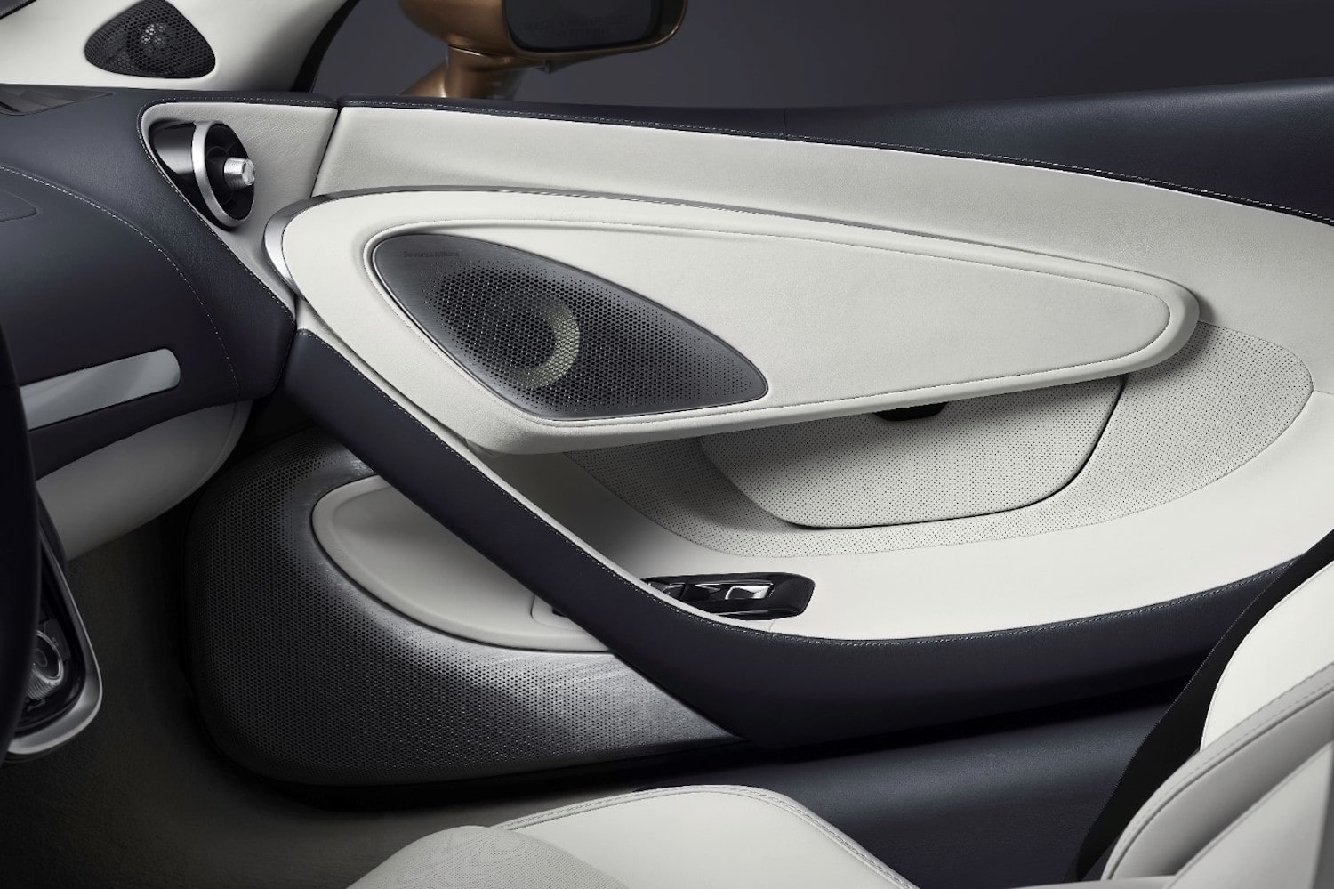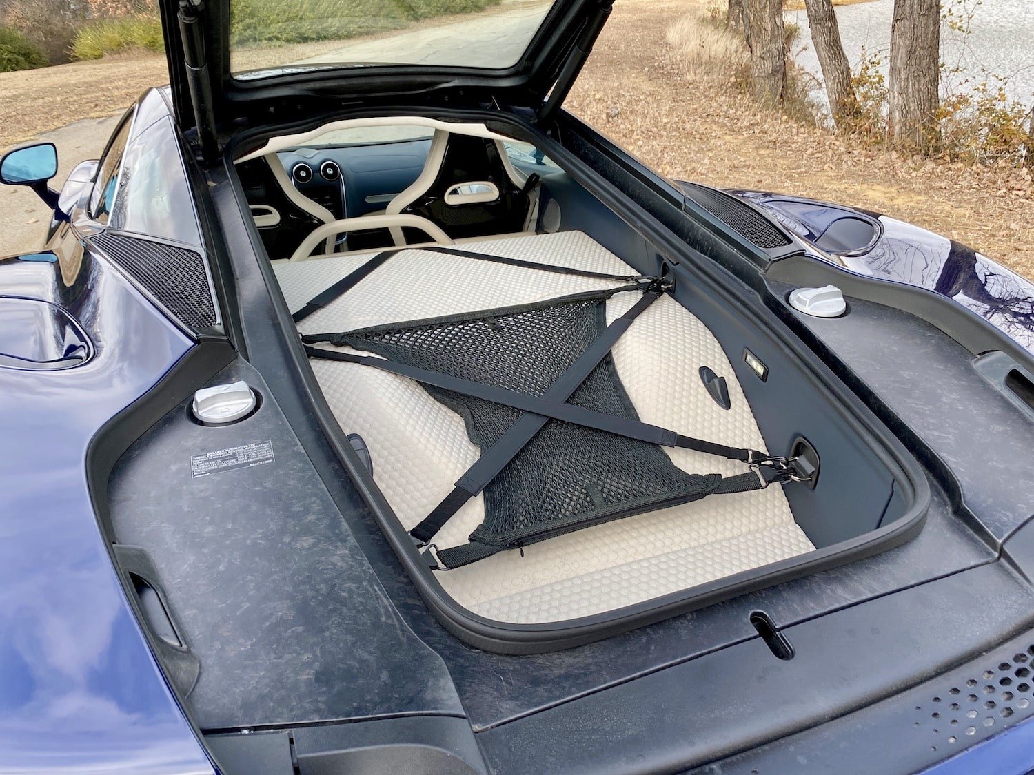 Unlike other McLarens you won’t see the engine showcased over your shoulder in the cabin. Instead, you find 14.8 cubic-feet of luggage space. It’s quite luxurious-looking too and outfitted with what McLaren calls Super Fabric, a durable stain-resistant fabric designed to protect the luggage bay. An optional strap helps keep things secure. With the power hatch open, the only thing that tips you off an engine is nearby are the water and oils intakes on each side of the luggage bay.