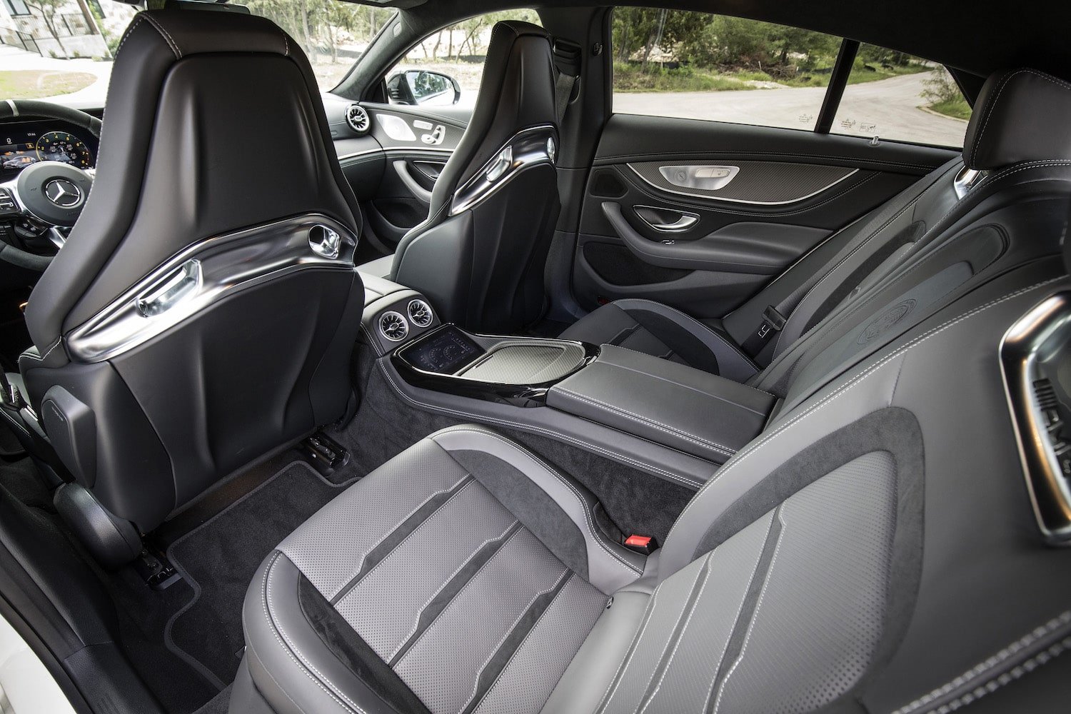 Fortunately, carbon-fiber trim beneath the screens softened my irritation some, as did a nifty console that extended all the way back between the rear bucket seats, enhancing the cockpit feel.