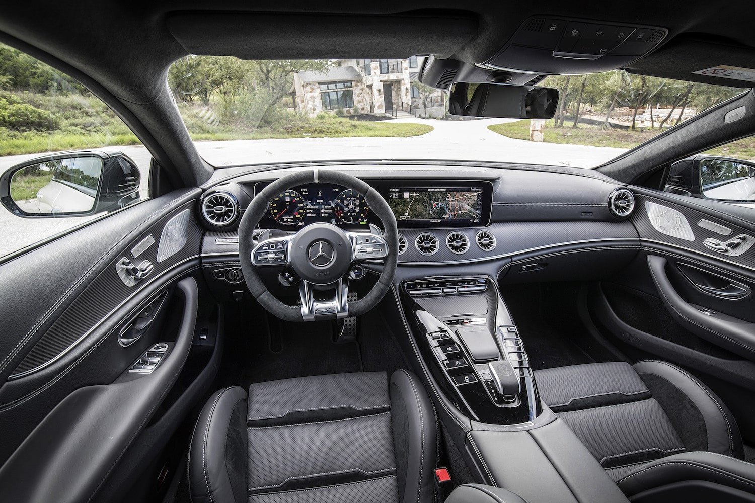 The carbon-fiber trim wrapped elegantly around the mid-dash into the GT 53’s door panels, complementing fine black-leather seats with unique sectioning and perforated centers.