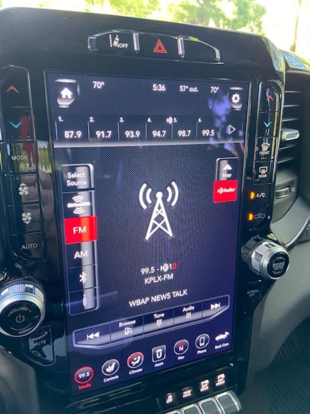 The Power Wagon’s seats are very comfortable and everything is easy to reach. Large gauges are easy to read and there is the massive 12” Uconnect screen on the dash that looks like a large vertically placed iPad. This system virtually operates everything including the 17-speaker Harman Kardon sound system, Bluetooth, Apple CarPlay, Android Auto, the Wi-Fi hotspot, and a host of apps you can personalize.