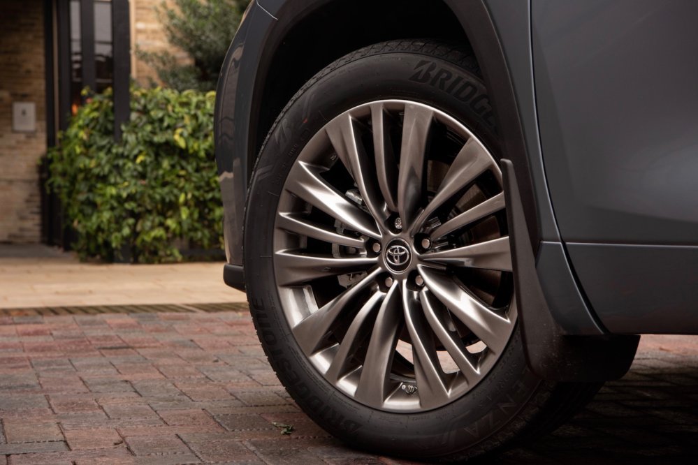 Calming some of that were nice-looking turbine-style 20-inch wheels shod with 235/55 tires, while a couple of Toyota’s signature bulbous taillamps wrapped around the rear.