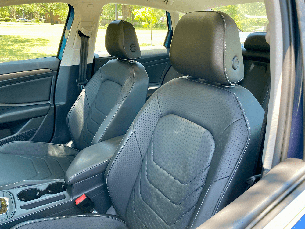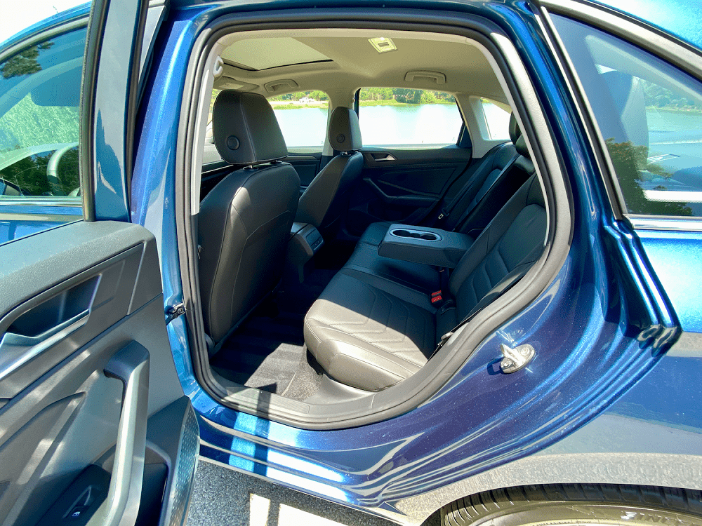 The Jetta is spacious with plenty of leg-room for all. The second row offers a dropdown center console and 60/40 fold-down split. The SEL Premium’s heated rear seats have firm side bolstering which makes them seem on the narrow side. There is plenty of cargo space in the trunk.