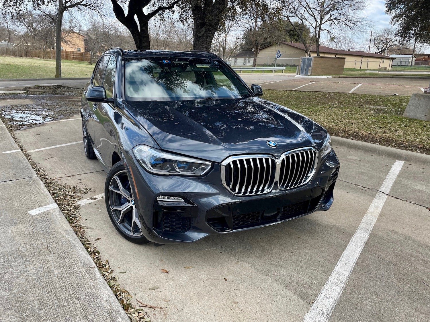 I love the looks of this X5, especially the 21” wheels with blue brake calipers, which are part of the M Sport package and this Artic Gray optional paint is just beautiful. From every angle, this is a sharp-looking SUV.