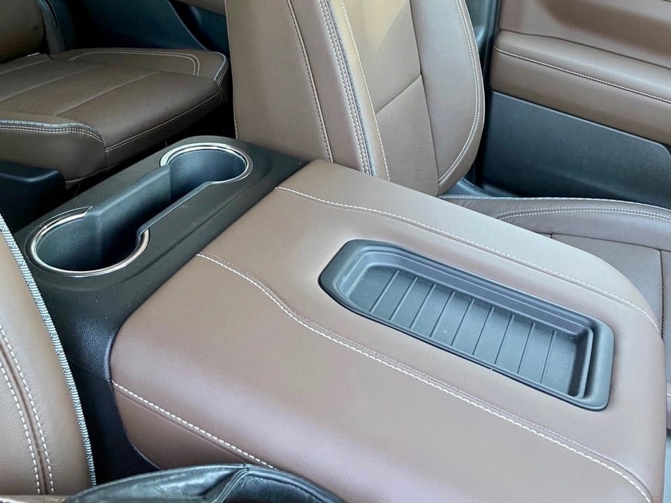 Rear passengers can control their own temperature, have USB ports, and a 110-volt power outlet for charging your devices. Rear occupants can enjoy the journey with the rear seat media system that features two vibrant 12.6” screens in the rear that will display different content on each one. You can use your wireless device, the built-in Wi-Fi, or watch a movie from a Firestick. It is an amazing system and it comes with wireless headphones, but be aware, there is no DVD player.