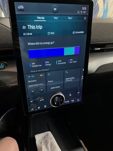 The screen operates the sound system, Bluetooth, Apple CarPlay, Android Auto, a Waze app, and the owner’s manual can be read digitally. During research, Ford found out people like a volume knob for their sound system and they integrated a huge one at the bottom of the screen, or you can adjust volume from the steering wheel control.