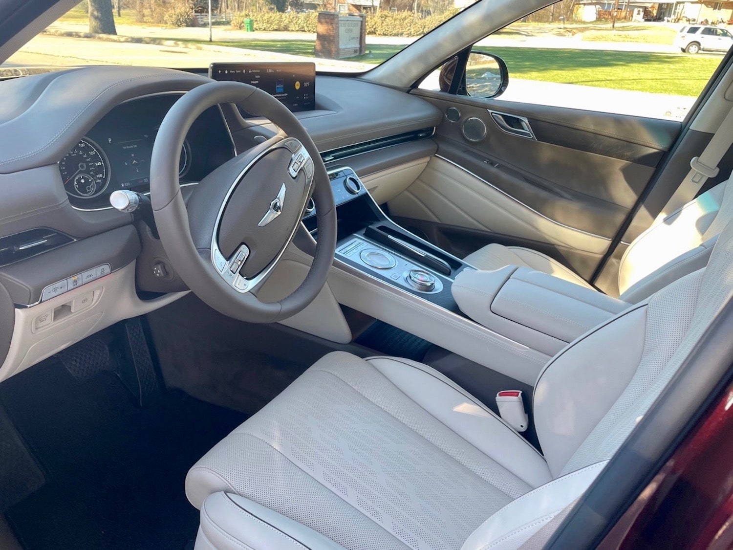 Coolness abounds in the GV80 starting with the key fob. You can hit the hold button on the fob, then move the SUV forward and backward remotely. This would be super handy for backing out of your garage, or when someone parks too close to you, or perhaps just to amaze your friends.