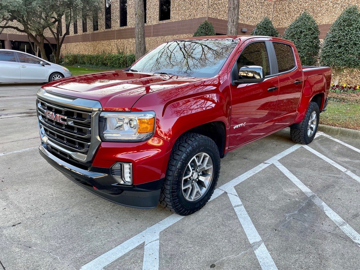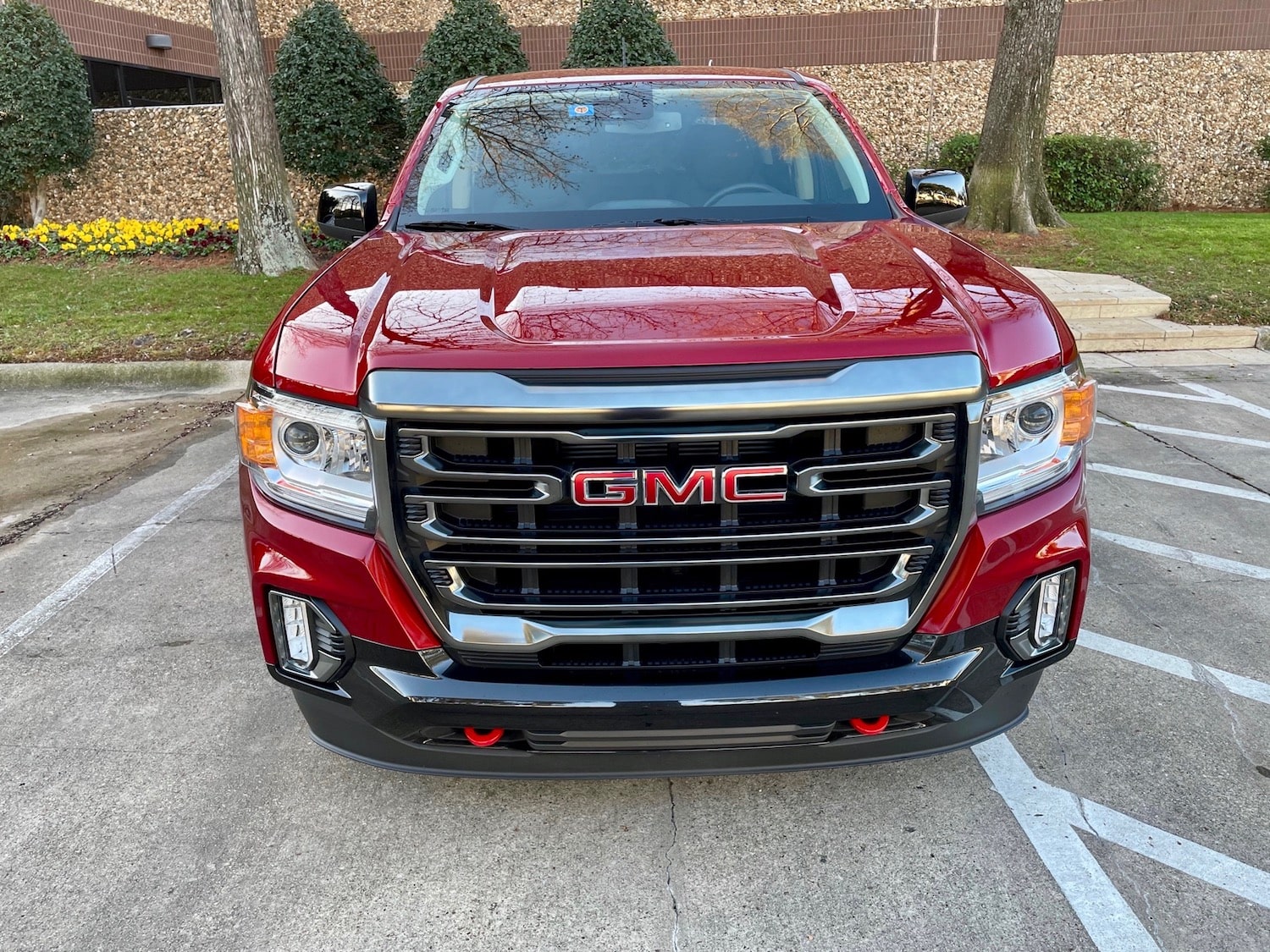This week I am behind the wheel of the 2021 GMC Canyon AT4, a 4-wheel drive Crew Cab that is new for this year. It has a special off-road suspension system with automatic locking rear differential, larger tires, and a unique grill with red tow hooks under it.