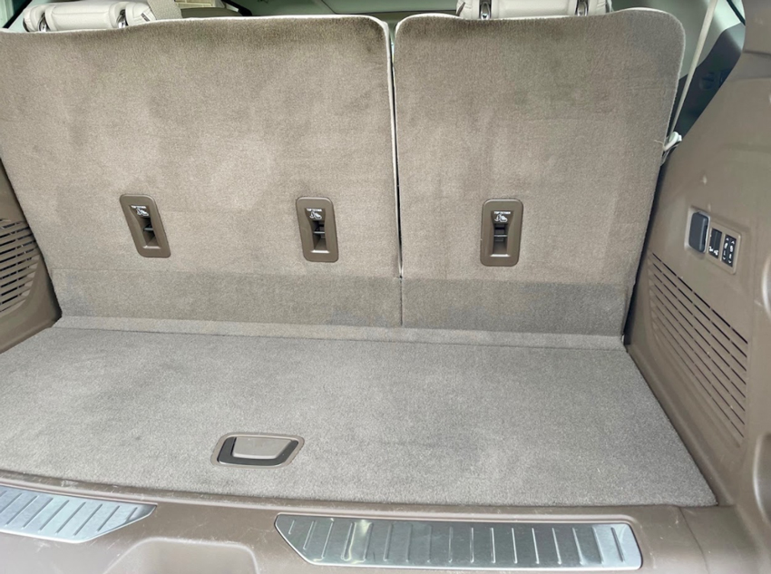 Cargo area is much improved for 2021 even with the 3rd row seats up. Power buttons will allow you to fold the 3rd and 2nd row seats down to a completely flat load floor and have an amazing 123 cubic feet of cargo.