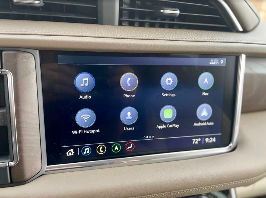The Yukon has a 10.2-inch touchscreen that sits low on the dash and looks less like an add-on feature like so many I see these days. This makes it easier to reach. It operates the sound system, climate control, Bluetooth, navigation, Wi-Fi, settings, Apple CarPlay, Android Auto and even Alexa.