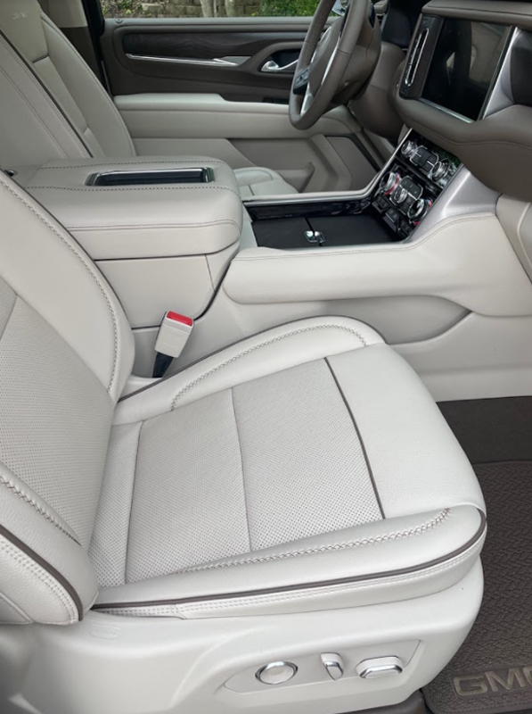 While there are so many things to love about the Yukon Denali, the interior is spectacular. The seats are comfortable and lightly bolstered, and you’ll find stitching all around the seats, door panels, dash, and steering wheel.