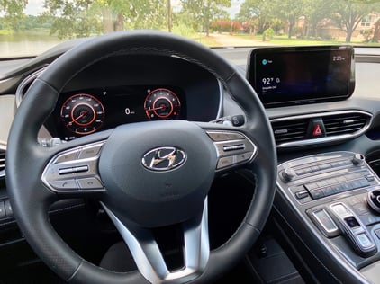 Hyundai’s shine in the technology department and the 2021 Santa Fe Calligraphy is no exception. The Calligraphy is outfitted with a new, larger 10.25-inch widescreen navigation display that’s top-notch both in terms of responsiveness and graphics. The 12.3-inch digital instrument cluster display you’ll see in many of Hyundai’s models is terrific, too. It also includes Hyundai’s Blind Spot View Monitor that displays when you use your turn signal.