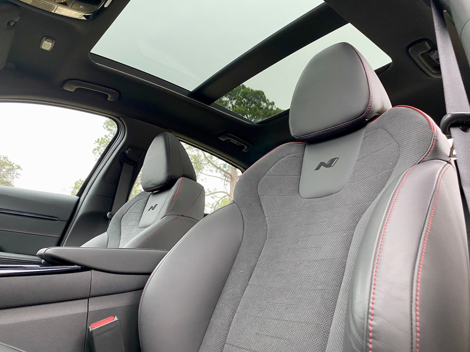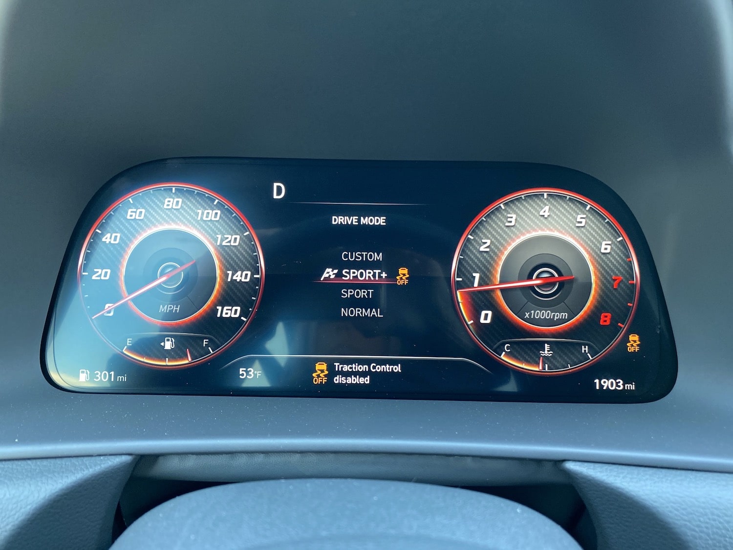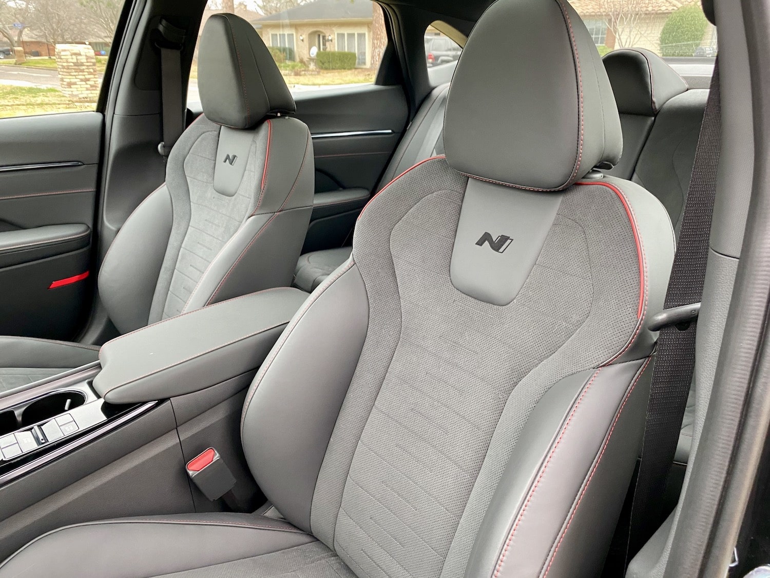 The N Line offers significantly more power than the lineup’s other models. Based on the brand’s 2.5-L turbo four-cylinder engine, the N Line setup gets an added turbocharger, different cylinder head, and unique internals. Those upgrades deliver 290-horsepower and 311 lb.-ft. of torque. (The standard model offers either 191 or 180-hp.) The engine is mated to a new, quickly shifting 8-speed dual-clutch transmission with paddle shifters. Fuel economy is 27 mpg combined. You can also start the engine remotely with the keyfob.