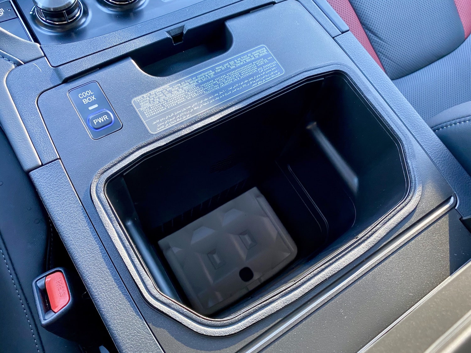 The center console houses a leather-wrapped gear shift knob, the Remote Touch Interface to control the infotainment system, along with drive mode, off-road and AWD controls. This is where you’ll also turn on the heated and ventilated seats along with the steering wheel. A great optional feature is a cool box.