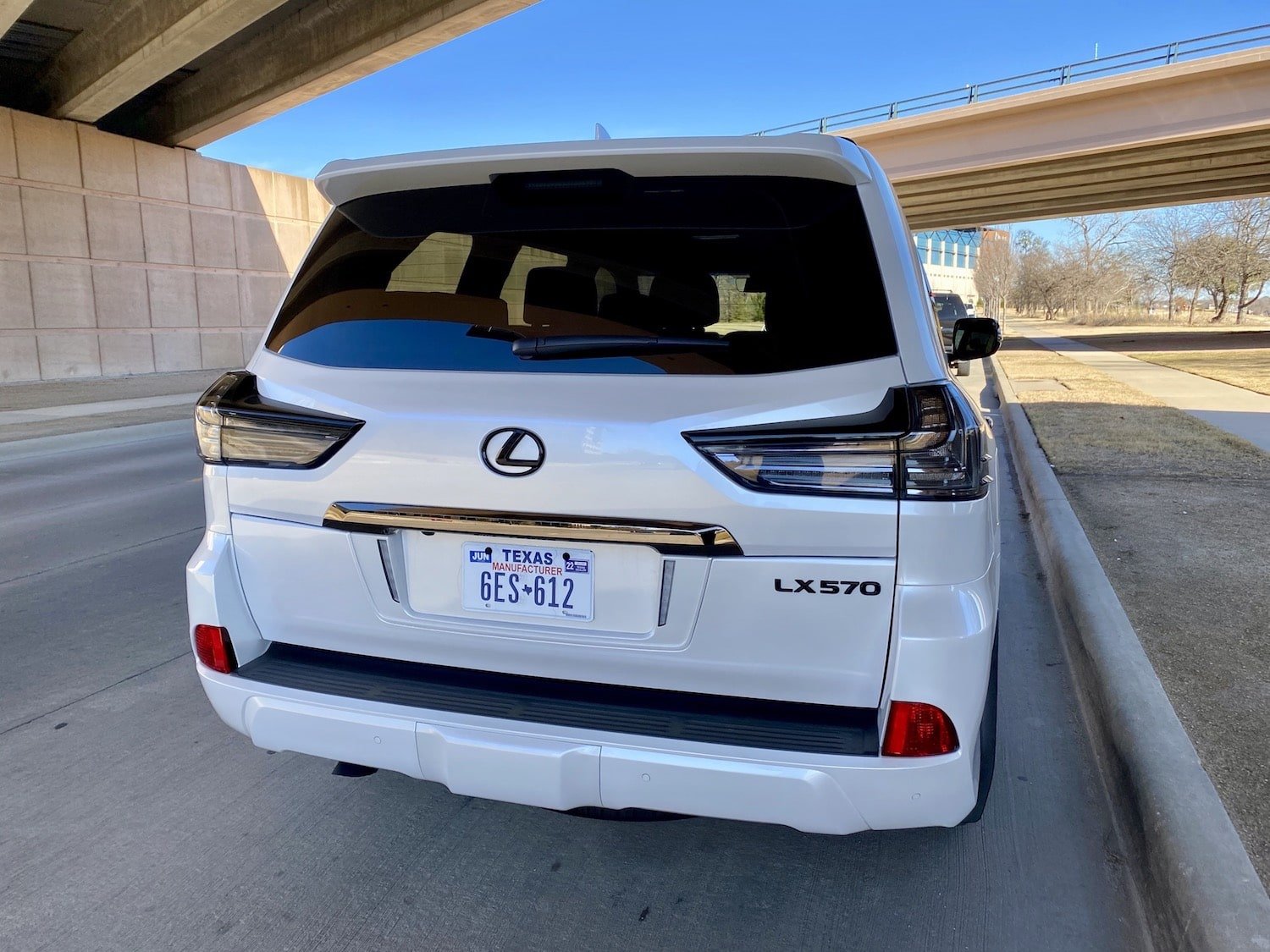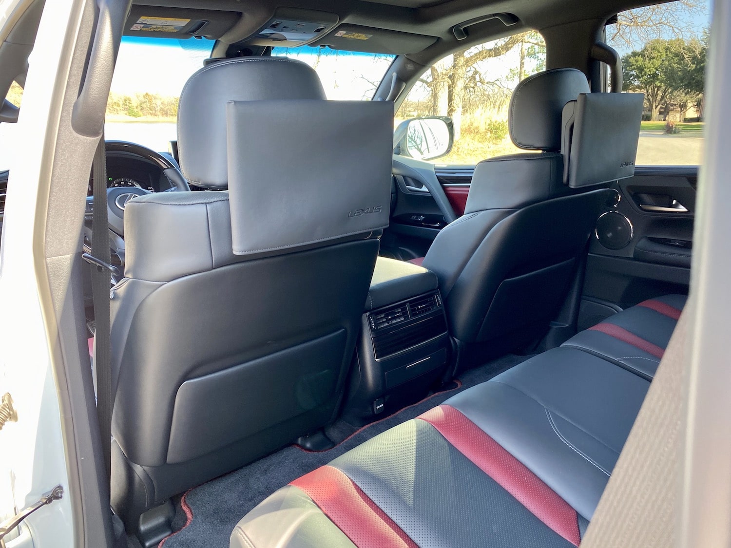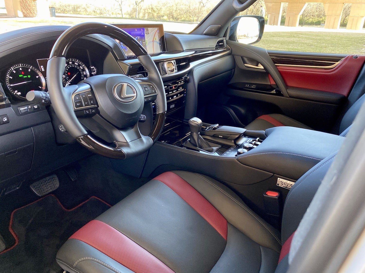 The LX shares a platform with the Toyota Land Cruiser. It’s powered by a 5.7-liter V8 that delivers 383-horsepower and 403 lb.-ft. of torque. It’s mated to a smooth-shifting 8-speed automatic and is equipped with standard all-wheel drive and off-road capability. It’ll tow up to 7,000 pounds. The acceleration feels great with the V8 providing confident power to this 6,000 pound SUV.