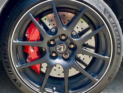 As for wheels, it rides on 19-inch ultra-lightweight BBS forged alloys and Michelin Pilot Sport 4S tires. You can’t miss the red Brembo brake calipers on both the front and rear. Up front the black grille is flanked by optional Premium Triple Beam LED headlights (Bi-LEDS are standard). In the rear, you get LED tail lights and a unique titanium exhaust along with the carbon fiber rear diffuser. I love the look of the entire tail end.