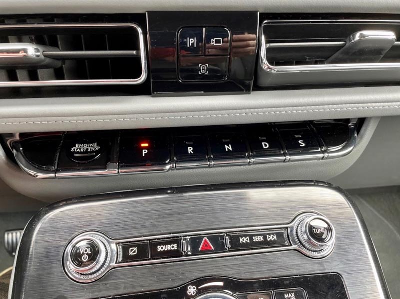 As you look up at the center stack, there are vertical buttons that operate the transmission, and I love that. You’ll also find the push button start button there. Not only is having the transmission buttons up high look attractive, it gives the center console more usable space.