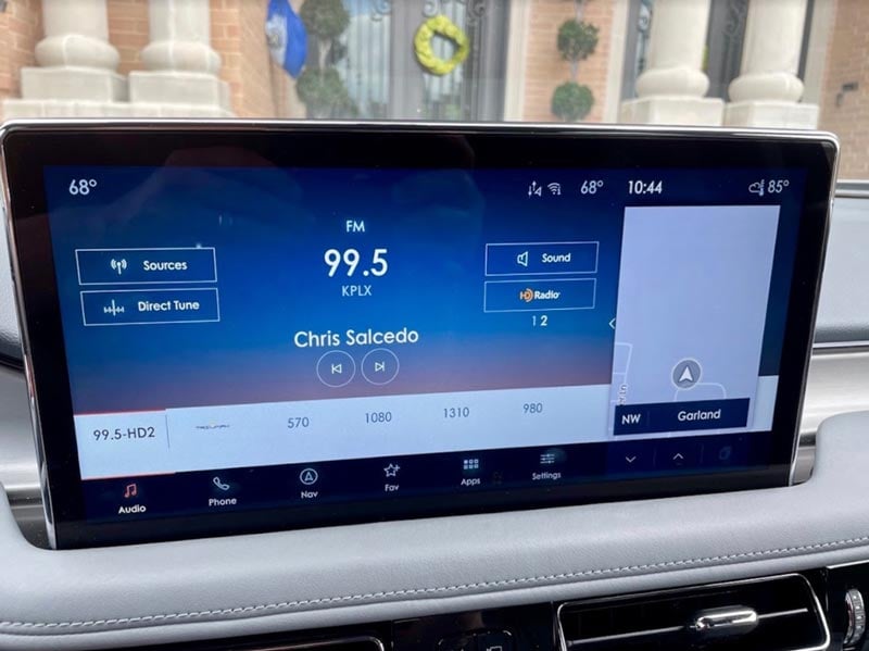 In the middle of the center stack is a large colorful touch screen that operates virtually everything from the climate controls to the 19-speaker Revel audio system, the navigation system, the 4G Wi-Fi hotspot, and it houses a fantastic 360-degree rear camera with a washer, something that is very handy when you’ve had bad weather.