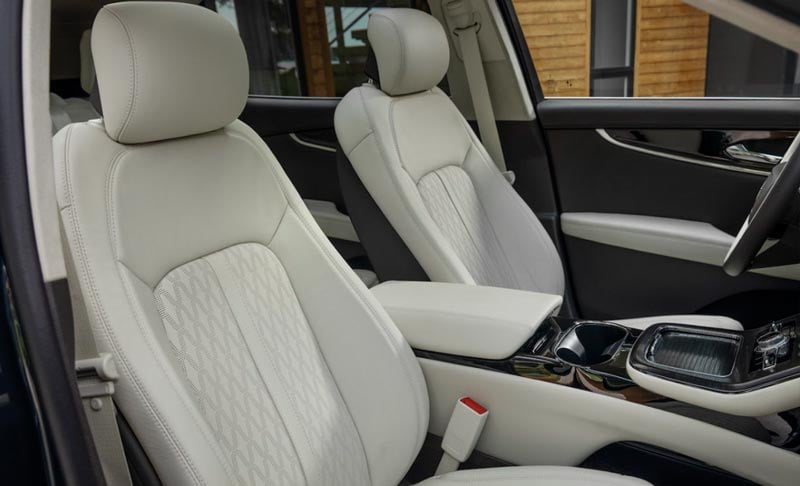 I had a lot of comments on the exterior looks of the Nautilus. The lines are crisp, the 21” Ultra Bright wheels are beautiful, in the rear you find dual exhaust and a spoiler, and from the front view, a waterfall grill sits below a swooping hood designed to deflect the wind. I also love the exterior color, one of the hottest colors out there right now, it’s called Ceramic Pearl.