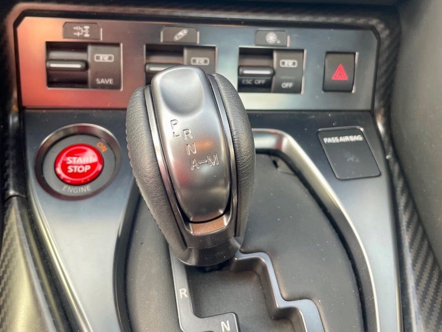 Nissan has kept the interior of the GT-R nice, but minimalist, sort of retro actually. Leather seats are heavily bolstered but comfortable. Gauges are easy to read and see, and everything operates from a slightly antiquated 8” touchscreen mid-dash that can also be changed from a dial on the center console, which is surrounded by carbon fiber. There are real-time Sirius XM apps for traffic, weather, sports scores, and more. The center console houses USB ports.