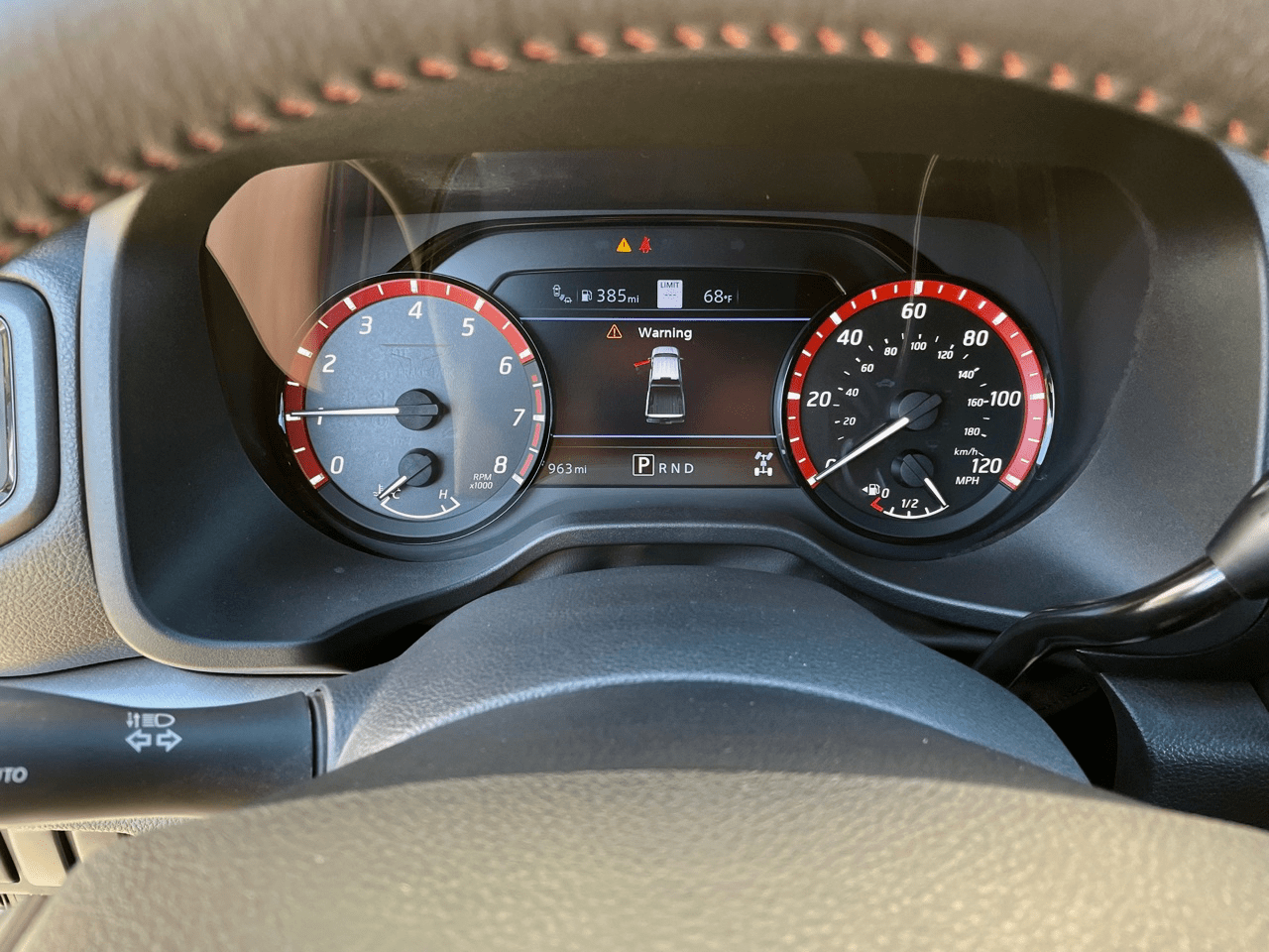 As you sit in the driver’s seat, the colorful gauge cluster is large and you can configure the center section to give you information you need including some cool 4X4 gauges and traffic sign recognition.