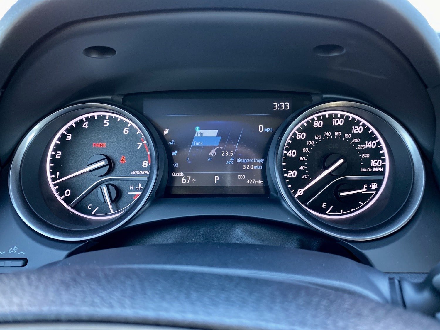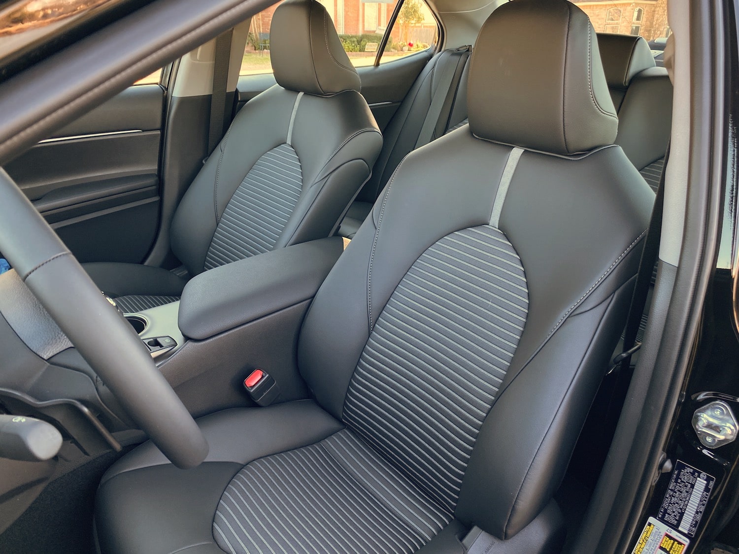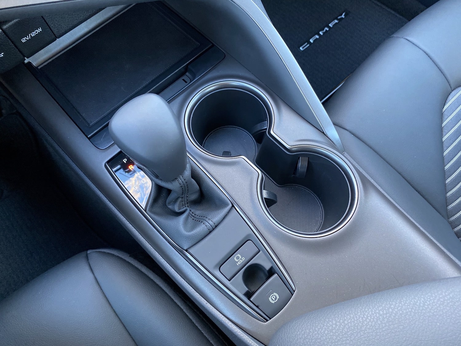 A 2.5-liter 4-cylinder engine mated to an 8-speed automatic transmission with paddle shifters delivers up to 202-horsepower (@6,600 rpm) and 182 lb.-ft. of torque (@4,400 rpm) on the AWD model. Note that fuel capacity drops from 15.8 to 14.4 gallons with the AWD. Fuel economy is 29 mpg combined. If you’re looking for more performance, the 2020 Camry TRD with its V6 engine that I reviewed last year boosts power to 301-horses, but you lose some fuel economy.