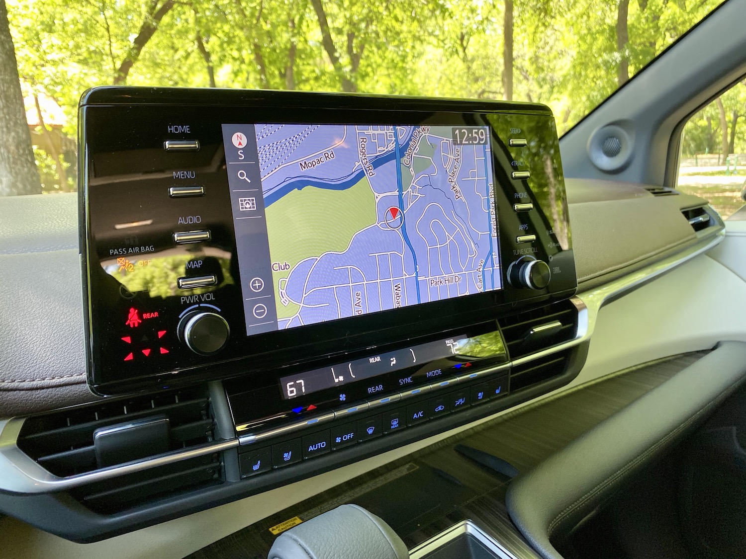 Other technology in the Sienna includes a 7-inch driver digital display with driver info and powertrain information set in between analog dials that could use a bit more updating. I also think the resolution of the backup camera and Birds Eye View perimeter scan could be a bit sharper.