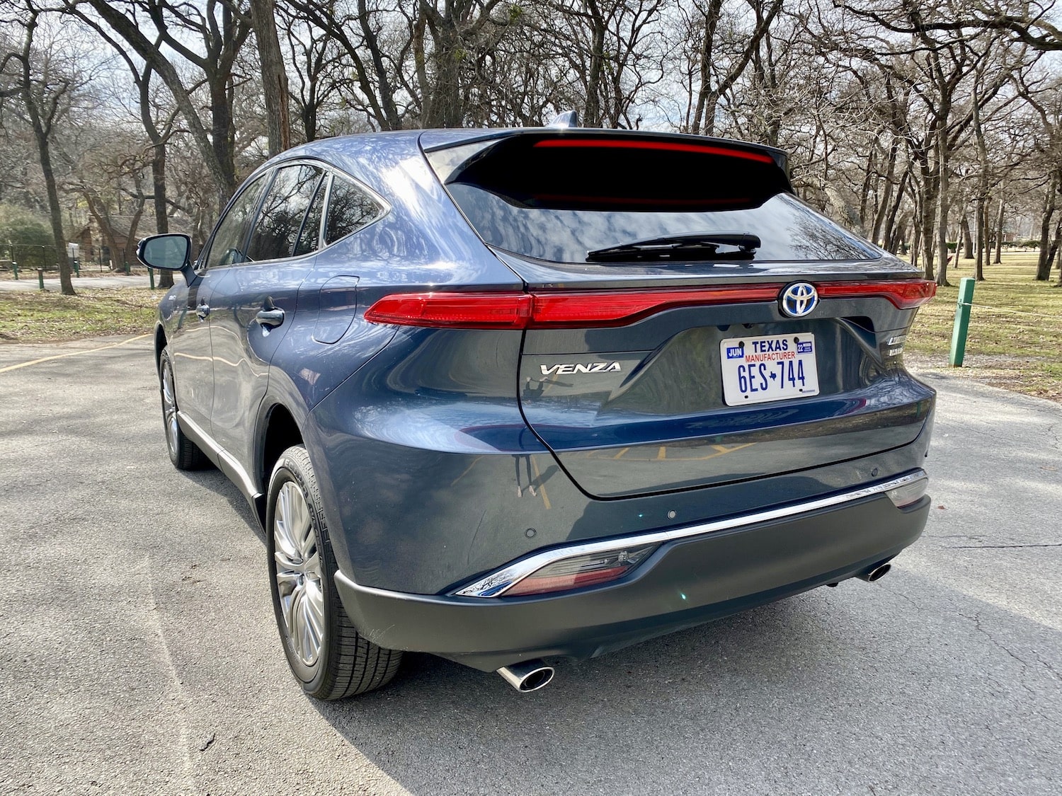 The Limited’s front and rear bumpers feature chrome accents. Color-keyed, heated and power outside mirrors are standard across the lineup, as are puddle lights. The Limited’s puddle lights add a Venza logo. Standard lineup features include black rocker panels, a shark fin antenna, dual chrome-tipped exhaust and an integrated rear spoiler. An optional Star Gaze panoramic sunroof means you don’t get silver roof rails.