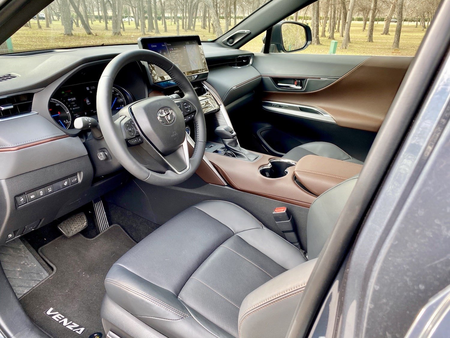The Venza also merges confidently into highway traffic and a multi-link suspension provides a comfortable, smooth ride. Drive modes are Sport, Normal, Eco and EV. Sport mode provides the most engaged driving experience. EV mode isn’t really practical, as it’s only for short distances at low speeds.