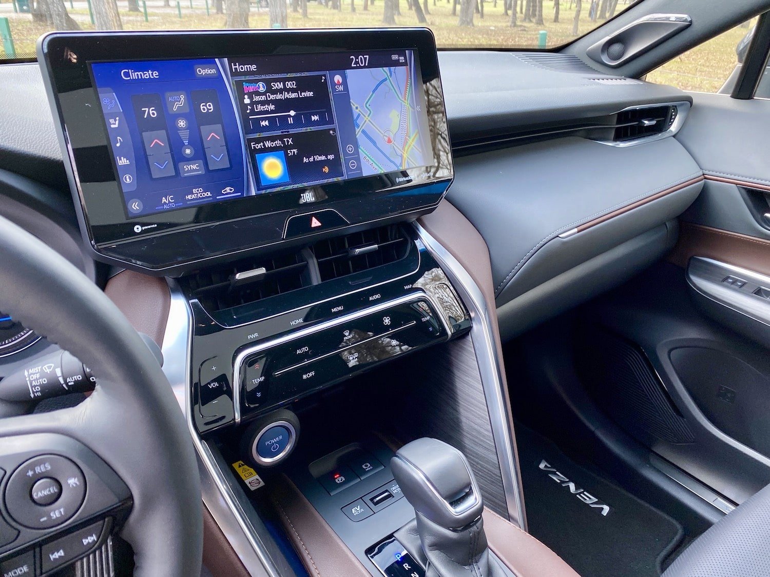 The Limited’s standard 12.3-inch touchscreen display is impressive, reminding me of what you’d find in a Lexus. It’s responsive with quality graphics and houses a birds-eye view camera in the Limited trims. Dynamic navigation and Dynamic Voice Command come with the Limited’s standard premium nine-speaker JBL sound system specifically designed for the Venza’s cabin. Voice Command works notably well. Connectivity features include Apple CarPlay, Android Auto, and Amazon Alexa and Bluetooth. You’ll get HD Radio too.