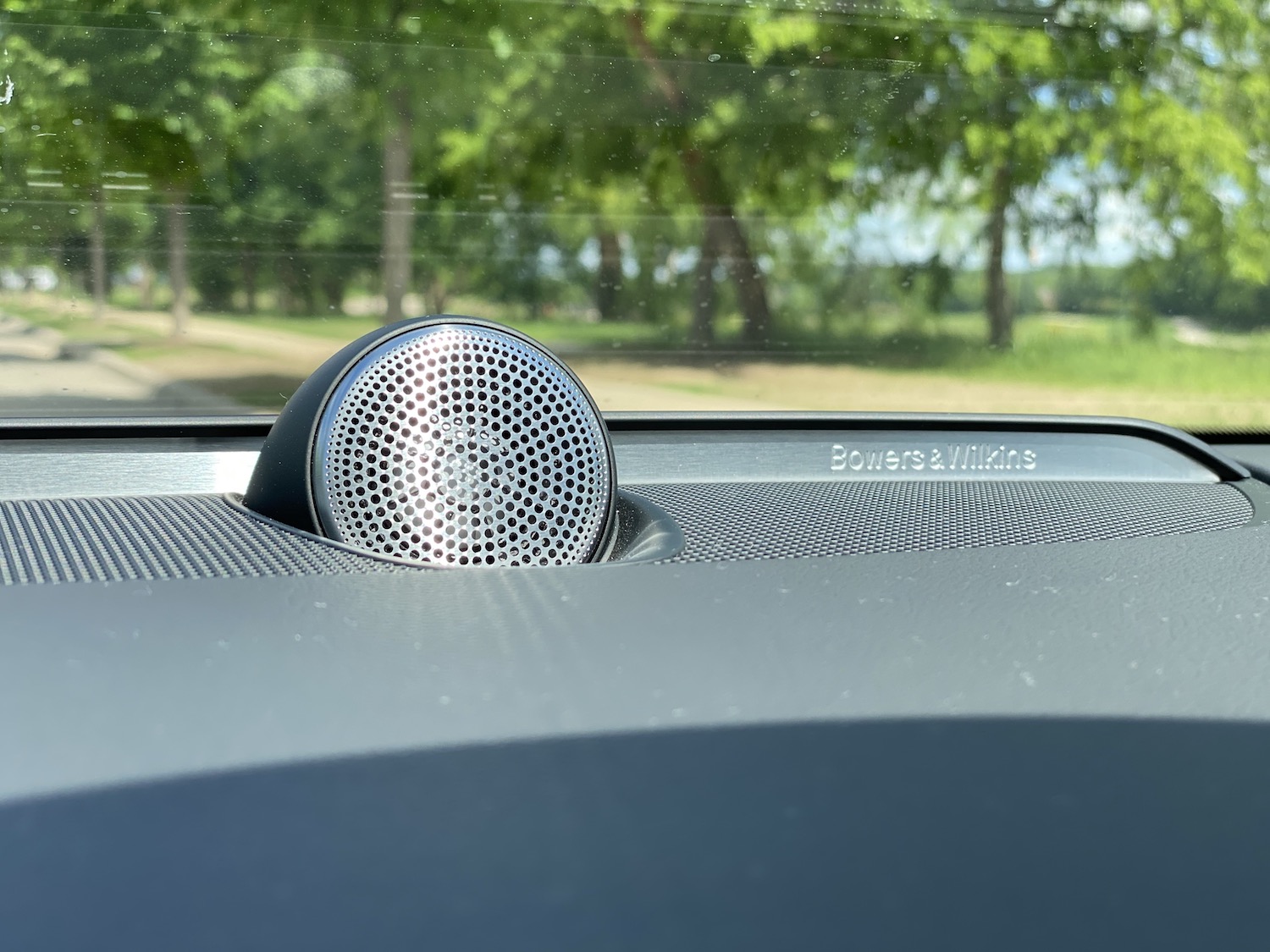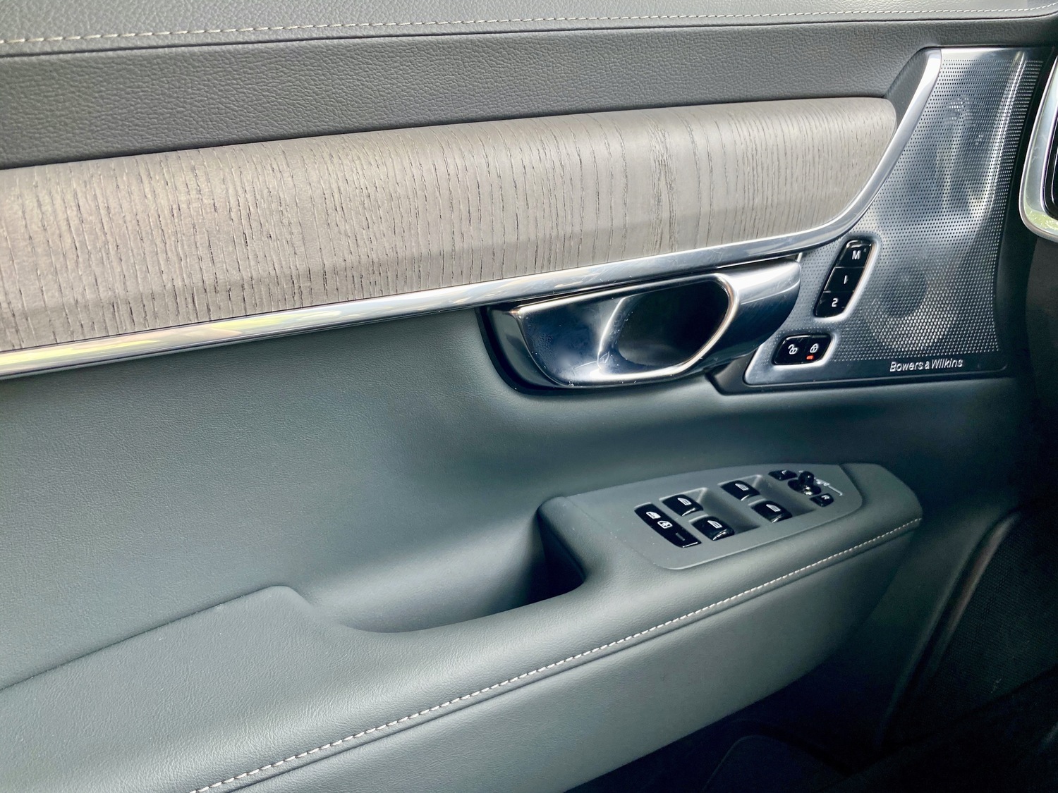 The V90 supports wireless charging, along with both Apple CarPlay and Android Auto, a WiFi Hotspot, Bluetooth, HD Radio, and Sirius XM with a trial subscription. The optional Bowers and Wilkens Sound System is amazing with great-looking speakers.