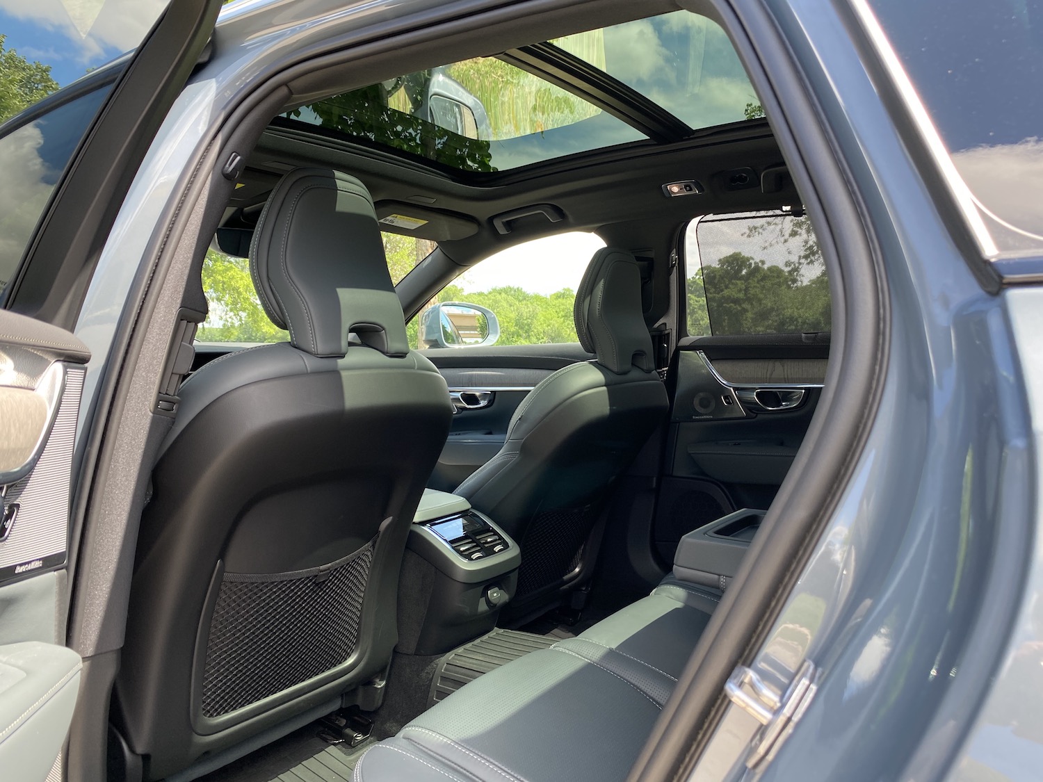 The V90 interior is a luxurious place to be where everything is so well-designed, you feel at home right away. The gray ash interior with handcrafted wood decor and glossy black accents features a tailored soft-touch dash and door panels. The Lounge Package provides amazing ventilated Charcoal Nappa Leather upholstery and power Comfort front seats - with yes - backrest massage! (Chevy Chase would be jealous I am quite sure.) The front seats also benefit from power cushion extenders. Volvo’s leather is just incredible. The seats are so comfy with impeccable stitching with perfect seat bolstering.