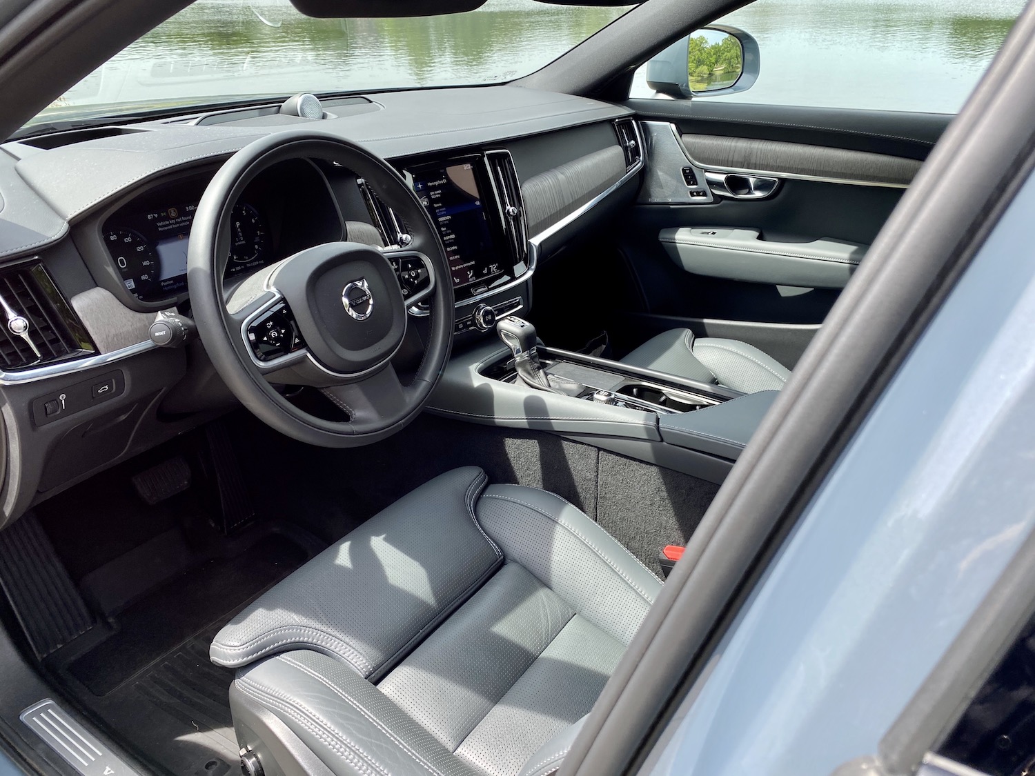 The V90’s powertrain feels great. It’s the T6 with a 2.0L super- and turbo- charged engine. It’s 316-horsepower and 295 lb.-ft. of torque feel great. (You’ll want to fuel up on premium as Volvo notes in the specs.) It’s mated to an 8-speed automatic transmission and is equipped with all-wheel drive.