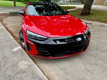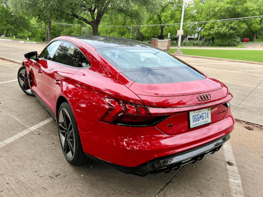 This Audi has caught people’s attention everywhere I’ve been with beautiful 21” wheels, red brake calipers, a deployable rear spoiler, a carbon fiber roof, and beautiful body lines. It sits low and has a very wide stance. It shares many of the same elements of its sister vehicle, the Porsche Taycan electric.