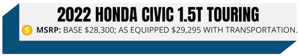 While a knob to control the audio is great -- I found myself wishing it was located further down with the A/C controls and more within reach. Other Touring tech goodies include Navigation and voice recognition along with a wireless charger. Voice recognition works like a charm changing stations. A Civic-first premium 12-speaker BOSE Audio system sounds terrific. Connectivity includes Bluetooth, HD Radio and available SiriusXM Radio.