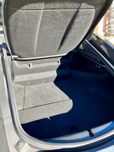 There is a pretty amazing amount of cargo area in the rear, which stays under a cargo cover. The rear hatch also opens and closes with the push of a button. Be aware, the F-Type has NO back seat, not even space for a purse.