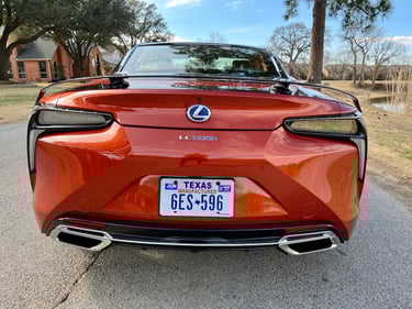 The LC 500h's non-touchscreen display is hidden behind glass. The 10.3-inch high-resolution split-screen displays navigation and a backup camera (though a larger camera view is on my wish list.) The system, operated via steering wheel or the Lexus’ remote touch interface pad, integrates Apple CarPlay, Android Auto, Amazon Alexa and HD Radio. Lexus' Dynamic Voice Command and Dynamic Navigation are among my favorite systems. You’ll also access the heated steering wheel and heated seat controls through the multimedia system. There are no physical buttons. The Bespoke Build is also equipped with a head up display.