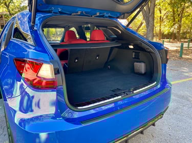 The RX offers a reclining/sliding 40/20/40 rear split seat and rear seat one-touch fold levers. An optional kick sensor liftgate operates at a nice speed and opens up to plenty of cargo space. A standard cargo Tonneau cover hides your valuables. Under the cargo area you’ll find a spare tire and a small space for storage. The F Sport’s stainless steel rear door garnish gives off an upscale look.