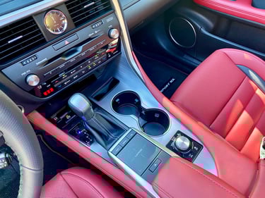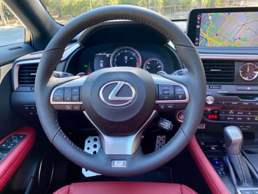 The F Sport’s red and black interior with aluminum trim and sport pedals serves up an appropriately sporty vibe. As always, the RX’s well-designed cabin is well-crafted, user-friendly and full of soft-touch materials. The cabin’s NuLuxe-trimmed 10-way power heated and ventilated power F SPORT front seats feature enhanced bolsters. The driver’s seat is comfortable, but leans to the firmer side. A leather and heated F-Sport badged steering wheel provides easy to use controls.