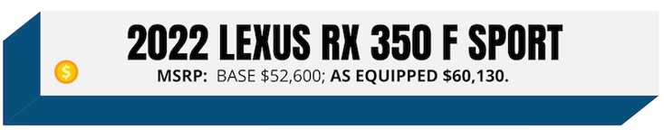 - 2022 Lexus RX 350 F Sport: America’s best-selling midsize SUV shows a sportier side that’s more than skin deep.