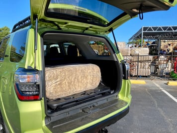 The cargo area easily fit a bale of straw. You’ll find a standard 120V outlet and a 12-volt back there. An optional cargo mat and cargo cover upgrade the whole look.