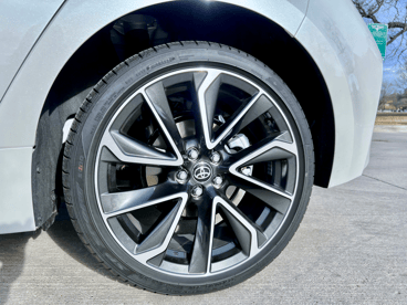 I’m all about my Corolla Hatchback XSE’s model’s two-tone exterior color. It makes a terrific impression right off the bat in eye-catching Wind Chill Pearl with a Midnight Black Metallic Roof. The XSE’s sporty-looking 18-inch bright machine-finished with dark gray metallic painted wheels add even more appeal.
