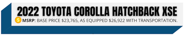 The Corolla Hatchback XSE as equipped is a terrific value at just under $27,000.