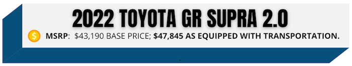 - 2022 Supra 2.0 in a few words: A gorgeous, fun-to-drive sports car with BMW-influence at an amazing price.