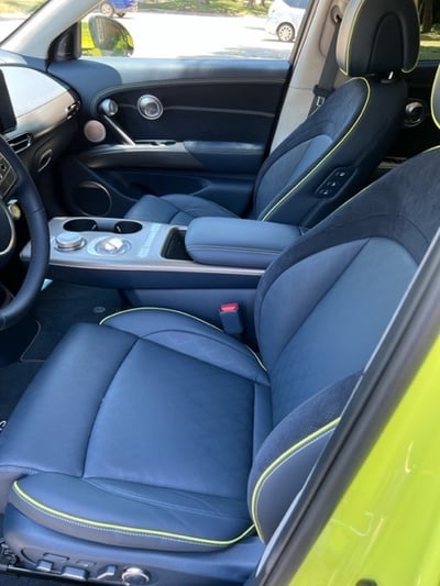 Back seat room is surprisingly good as is headroom. Rear occupants have rear shades, heated seats, 2 USB-C ports, power ports, and in an interesting twist, the back seat passengers can move the front passenger seat forward.