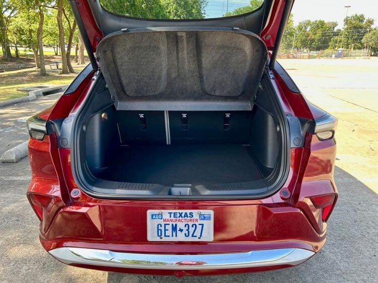 This is a very attractive SUV, it has sharp lines, I love the overall unusual shape, it has super-attractive 19” wheels, LED headlights and taillights, a new diamond-patterned grill, a hatchback-style electric tailgate with a huge back glass, a sloping roofline, and this is the first Buick with all-new Buick logo in the front and rear.