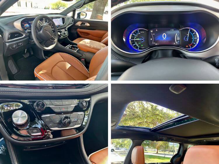 The Pacifica hybrid is incredibly quiet inside, and the ride quality is very good as well. Headroom is good throughout, in spite of the big panoramic moon roof.