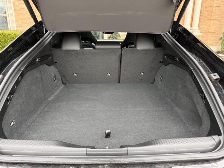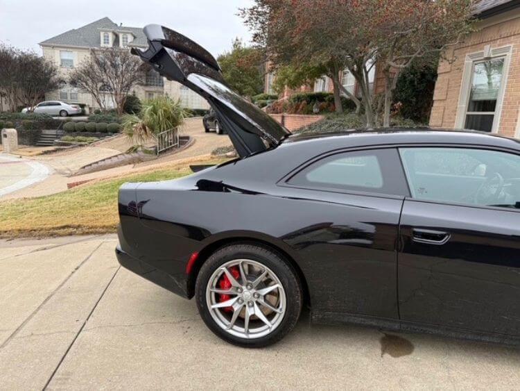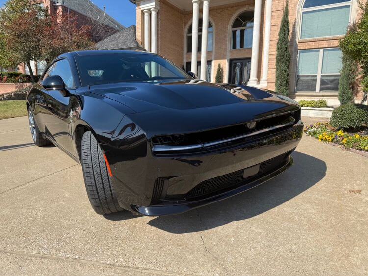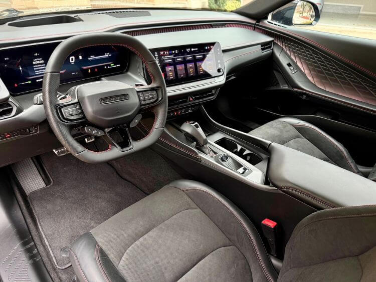 This new EV is a visually beautiful car in the Diamond Black Crystal exterior color. This new version Charger is visibly larger than in previous years. Besides length, this one is 5” wider than the 2023, and even 2” wider than the widebody version. Also notable is that this 2024 is a sportback, a large hatchback if you will, which really opens up the cargo area and gives the Charger a much more modern look.