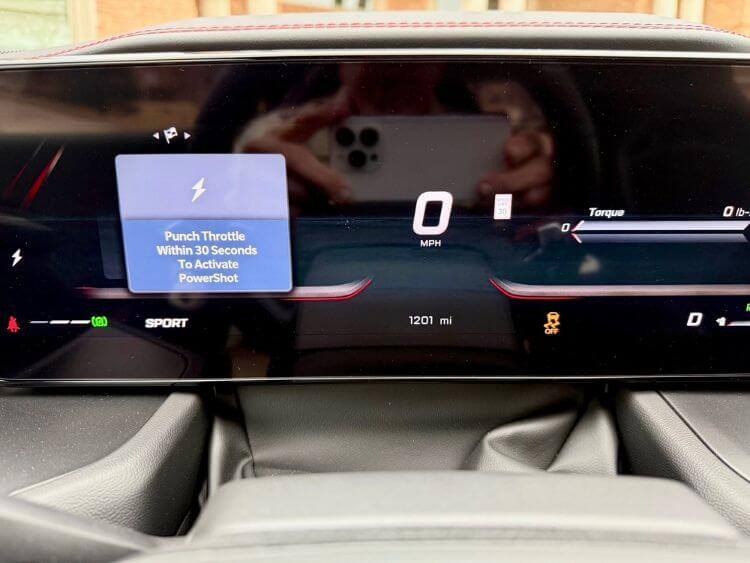 Next on the “makes me want one” list is the PowerShot button on the square steering wheel. This unleashes every single one of the 670-horses and will give you 15 seconds of heart-pounding thrills while you hang on for dear life and at the same time trying to watch for our friends in blue, you know, the ones that wear badges. The PowerShot button is a rush and very tempting, but it will suck the battery life quickly. Everything fun has a price after all.