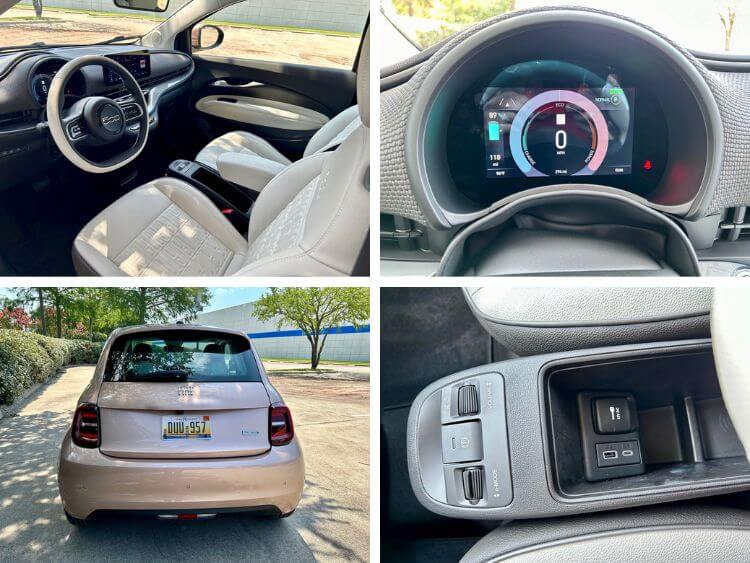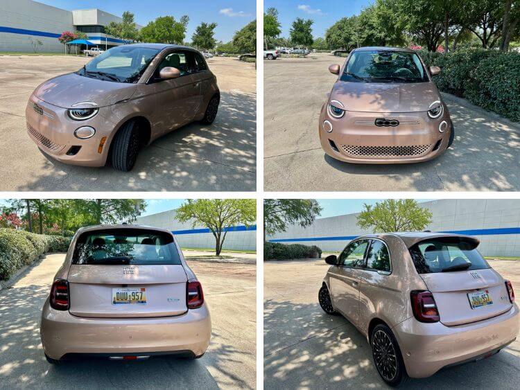 The gasoline-powered 500s are gone except for some straggler 2023 models. All the 2024s are all-electric, and you can choose from three trim levels: The Inspi-Red which is really Red on the outside and the least expensive model, the 500e Inspired By Music with JBL Virtual Venues, sound settings that emulate four different venues selected by opera maestro Andrea Bocelli, from his music room to an open-air arena. Lastly, the one I have which is the 500e Inspired By Beauty, which features the Rose Gold exterior color and eco-leather seats. The two latter models add $3,500 to the MSRP.