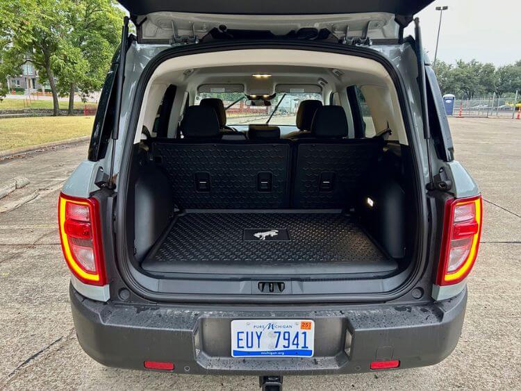 The cargo area is roomy, especially with the back seats folded down, and there is all-weather material that lines the cargo area. Neat touches include a built-in bottle opener and a light in the tailgate when raised. I also love you can open just the rear glass, or the whole tailgate.